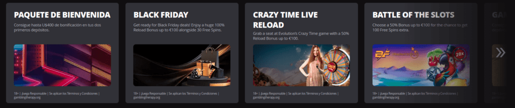 | Bono de Bienvenida | $400 USD + 100 giros gratis | 30x en juegos seleccionados |