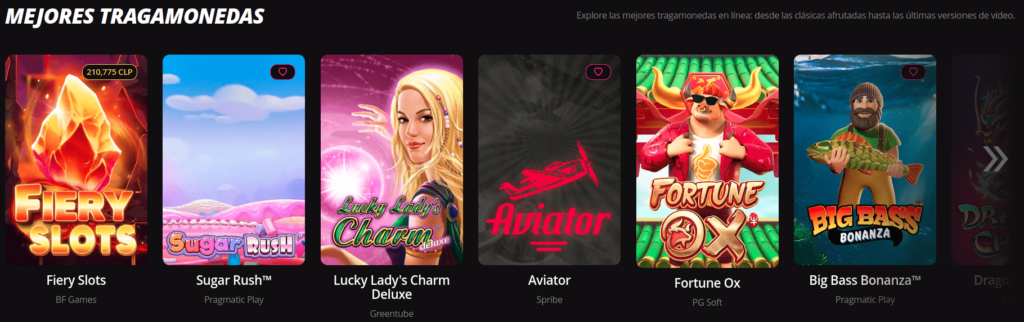 - 🎲 Tragamonedas clásicas y modernas: Una amplia variedad de slots con diferentes temáticas y niveles de complejidad.