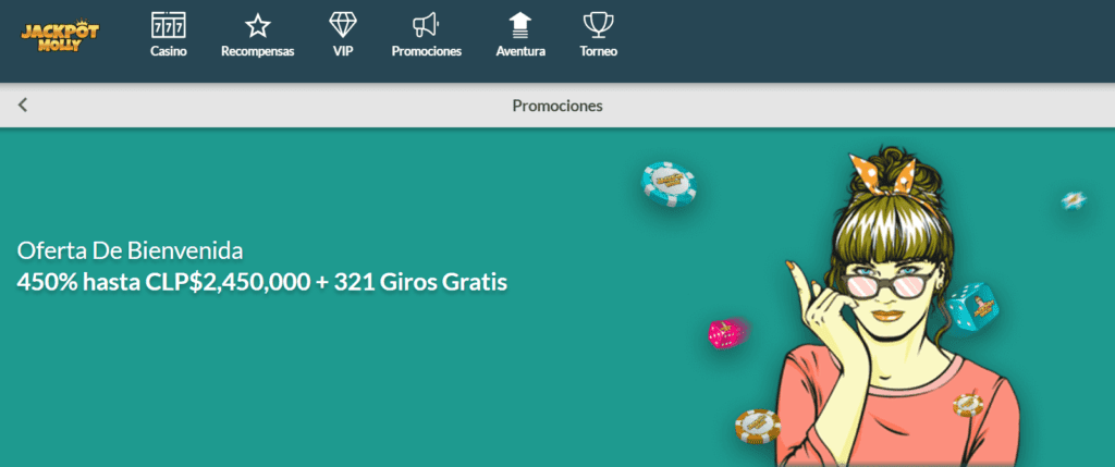 | 🎁 Bono de Bienvenida | 450% hasta 2 450 000 CLP + 321 giros gratis |