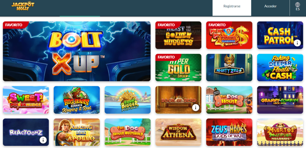 La variedad de juegos en Jackpot Molly es amplia y está diseñada para satisfacer las necesidades de todo tipo de jugadores, desde los novatos hasta los más experimentados. La plataforma ofrece: