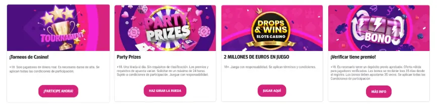 PartyCasino destaca en el mercado por su amplia gama de promociones y bonos, diseñados para satisfacer tanto a jugadores nuevos como a los más experimentados. A continuación, detallo los más relevantes.