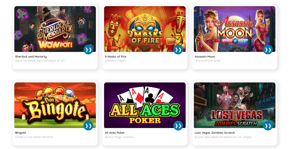 - Juegos casuales: Incluyen raspaditas, bingo y otros juegos interesantes para apuestas rápidas.