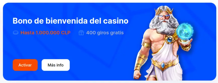 | 🎁 Bonos | Hasta 1.000.000 CLP y 400 tiradas gratuitas en tus cuatro primeros depósitos |