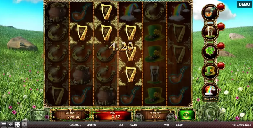 La calidad gráfica de 1st of the Irish es realmente impresionante. Con colores vivos y detalles minuciosos, el juego captura la esencia de la cultura irlandesa de manera espectacular. Cada símbolo y fondo ha sido cuidadosamente diseñado para ofrecer una experiencia visual que es tanto cautivadora como inmersiva. Estos detalles gráficos no son solo para deleite del ojo, sino que también facilitan una navegación más intuitiva en el juego.