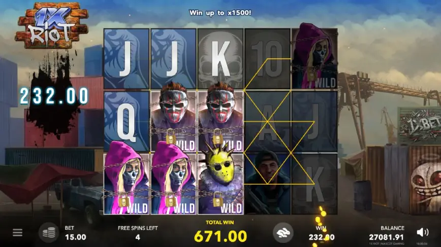 Los gráficos de 1X Riot son de alta calidad, destacando por su atención al detalle. Desde los símbolos hasta el fondo del juego, cada elemento está diseñado cuidadosamente para sumergir al jugador en este ambiente urbano. La resolución nítida y los efectos visuales dinámicos contribuyen a una experiencia de juego envolvente que muchos jugadores apreciarán.