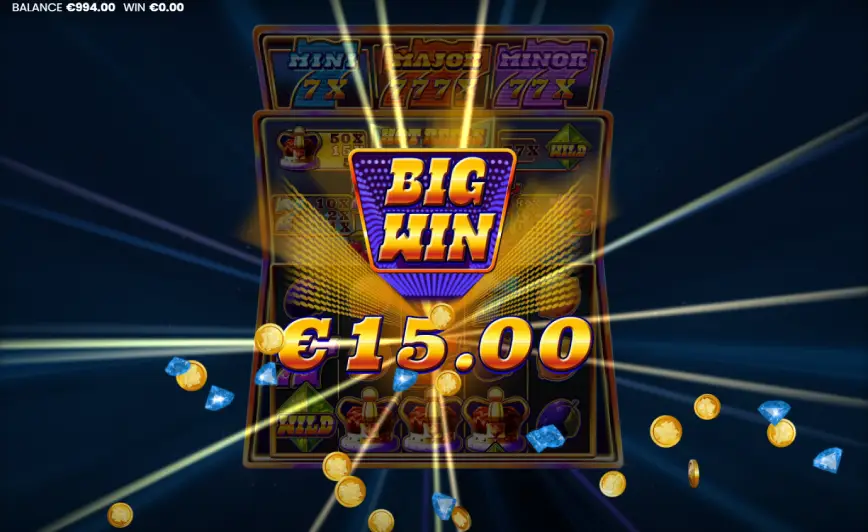 - 🎰 Free Spins: Estas se activan con los símbolos Scatter, y durante esta función, todos los 7s en una combinación ganadora se transforman en la versión más alta presente en los carretes, potenciando las ganancias.
