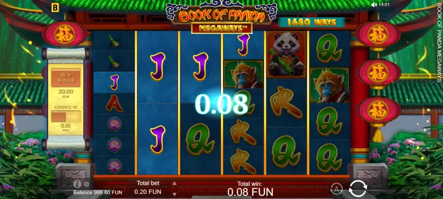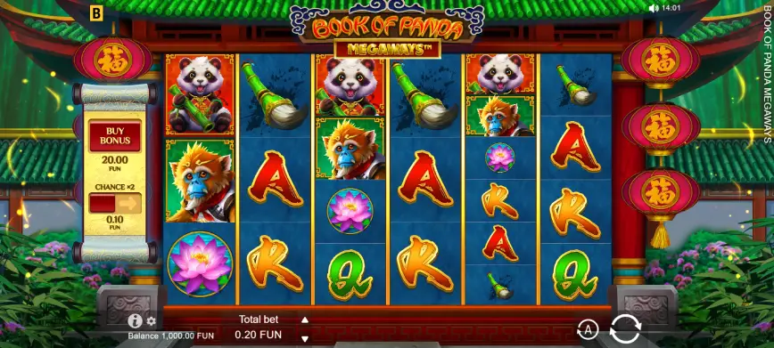 Los gráficos son complementados por una banda sonora serena, diseñada para sumergir al jugador en la atmósfera calmante y espiritual del templo chino. La atención al detalle en los elementos visuales y auditivos en Book of Panda Megaways garantiza que cada giro sea una experiencia emocionante. Este nivel de detalle no es solo para el deleite de los ojos y oídos, es un testimonio de la dedicación de BGaming para crear un entorno de juego auténtico y atractivo.