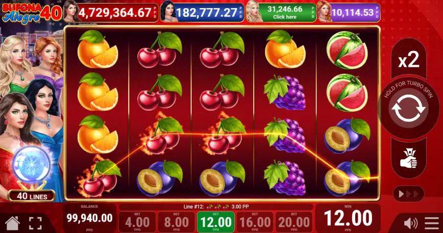 Los gráficos, sonidos, y animaciones de Bufona Alegre 40 son de primera categoría, lo que contribuye de manera significativa a una experiencia de juego inmersiva. La calidad de estos elementos es fundamental para mantener el interés de los jugadores y asegurar que cada sesión de juego sea tan entretenida como la anterior.