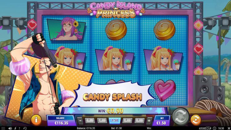 La función Candy Splash es una de las características más emocionantes de Candy Island Princess. Se activa cuando logras una combinación ganadora con 3 símbolos iguales de las concursantes. Al hacerlo, los símbolos se expanden, cubriendo todo el carrete y otorgando pagos en todas las líneas. Esta expansión no solo mejora tus oportunidades de ganar, sino que también añade un toque visual impresionante al juego.