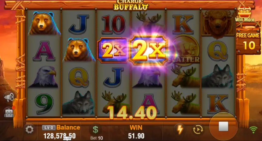 Las animaciones en Charge Buffalo son fluidas y están bien integradas, especialmente cuando se activan giros gratis o se obtienen grandes combinaciones ganadoras. Este nivel de detalle mantiene a los jugadores enganchados y entretenidos, ofreciendo una experiencia visual y auditiva que complementa perfectamente la jugabilidad.