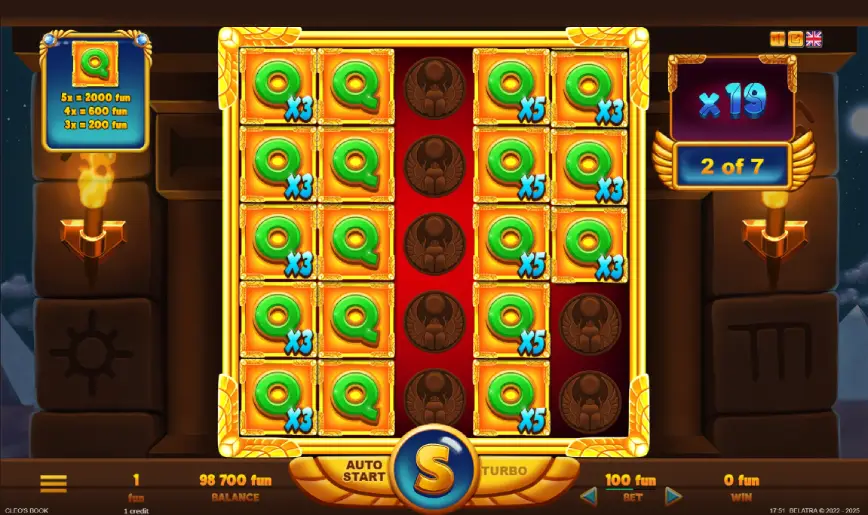 Una de las características más interesantes de Cleo’s Book es la función #BuyBonus, que permite a los jugadores acceder directamente a funciones de bonificación sin tener que esperar a que se activen de manera aleatoria. Esta opción es especialmente útil para aquellos jugadores que desean maximizar su tiempo de juego y aumentar sus oportunidades de ganar. Sin embargo, es importante tener en cuenta el costo asociado a esta función, ya que se basa en el tamaño de la apuesta actual del jugador. Esto añade una capa estratégica al juego, ya que los jugadores deben decidir cuándo es el momento adecuado para invertir en un bono y cómo esto puede afectar su bankroll.