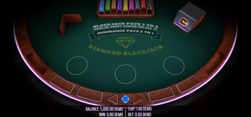 - 💯 Una característica única de Diamond Blackjack es la posibilidad de jugar en tres posiciones simultáneamente. Esto no solo te ofrece la oportunidad de diversificar tus apuestas, sino también de aumentar tus posibles ganancias por ronda.