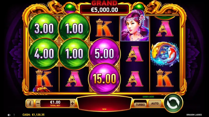 La volatilidad del juego es media a alta, lo que significa que aunque las victorias pueden no ser tan frecuentes, tienen el potencial de ser significativamente generosas cuando se presentan. Esto hace que Dragon Ladies sea una opción atractiva para los jugadores que disfrutan de la emoción de las grandes victorias, sin importar que estas vengan tras algunos giros sin éxito.