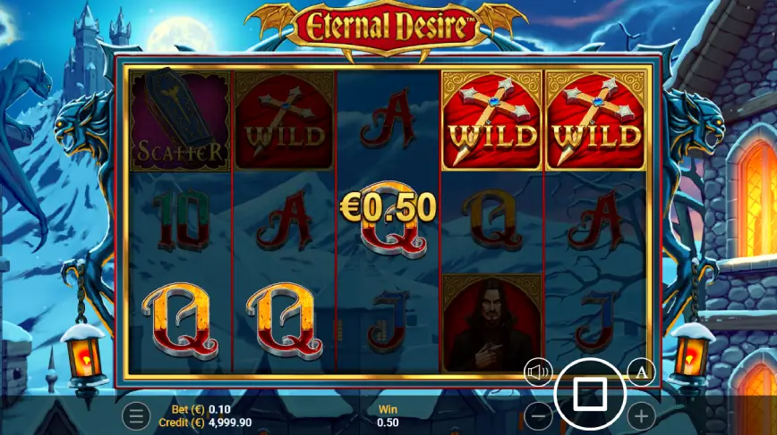 Los gráficos de Eternal Desire capturan de manera efectiva la esencia gótica del tema vampírico. Desde los símbolos en los carretes hasta el fondo del juego, cada elemento visual está diseñado para transportarnos a un mundo de misterio y oscuridad. Las animaciones, por su parte, añaden dinamismo y profundidad, manteniendo la atención del jugador en cada momento.