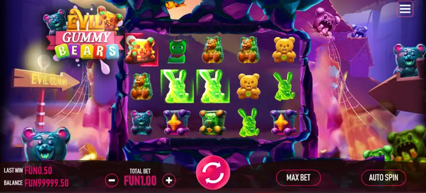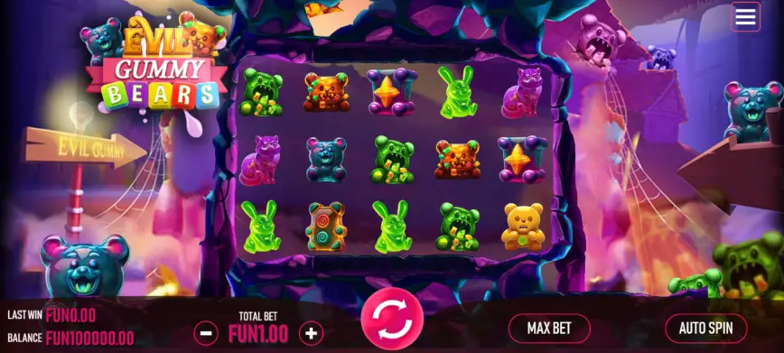 La interfaz de usuario de Evil Gummy Bears es sencilla y fácil de navegar, lo que permite a los jugadores concentrarse en lo que realmente importa: disfrutar del juego. Las opciones están claramente dispuestas y los controles son intuitivos, lo que hace que el juego resulte cómodo para todos los jugadores. Además, el acceso a la versión demo permite probar la tragamonedas sin riesgo, una gran ventaja para aquellos que buscan experimentar antes de apostar dinero real.