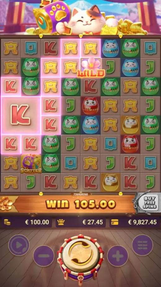 El protagonista, el Happy Neko, sostiene un pequeño martillo dorado que brilla con suerte, un detalle que no pasa desapercibido para los jugadores que buscan un toque de fortuna en sus apuestas. Este martillo es un símbolo poderoso, recordando a los jugadores que la suerte está de su lado mientras giran los carretes. La historia detrás del Neko, que trae alegría y prosperidad a los aldeanos locales, es un recordatorio constante de que el juego no es solo sobre ganar, sino también sobre disfrutar de una experiencia llena de positividad y buena fortuna.