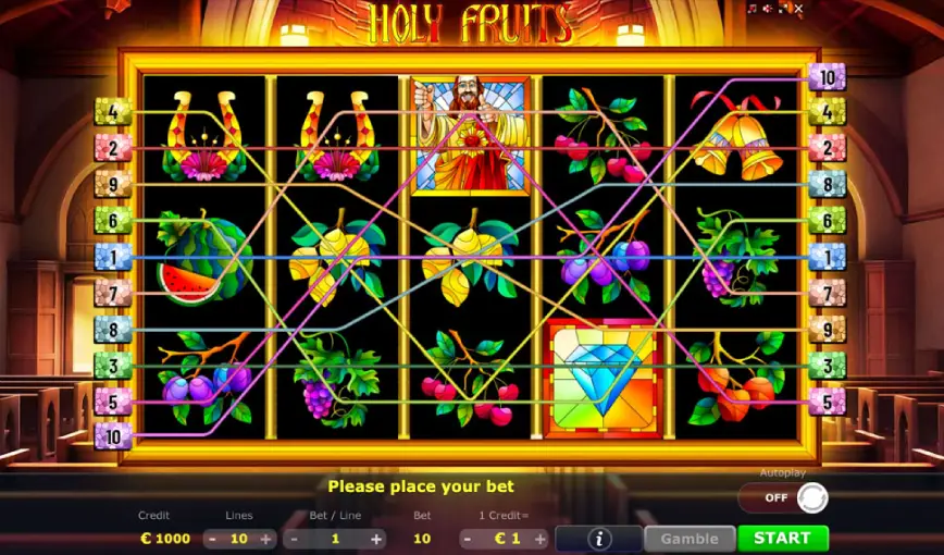 - 💯 Entender las líneas de pago: Holy Fruits cuenta con 10 líneas de pago, y entender cómo funcionan puede marcar la diferencia en tus ganancias. Asegúrate de saber qué combinaciones de símbolos ofrecen los mejores premios e intenta alinear tus apuestas para aprovecharlas.