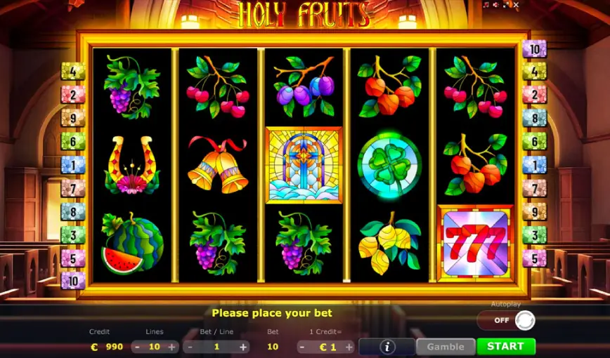 La jugabilidad de Holy Fruits es intuitiva, lo que la hace accesible para todos los niveles de habilidad. Los controles son sencillos, permitiendo a los jugadores ajustar sus apuestas y activar los giros con facilidad. El juego también incluye una ronda de bonificación adicional que se activa al obtener tres o más símbolos de bonificación. Esta característica proporciona una capa adicional de emoción y potencial de ganancia, atrayendo tanto a novatos como a veteranos del juego.
