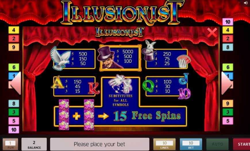 Illusionist presenta una configuración clásica de 5 rodillos y 9 líneas de pago, características que son bien recibidas tanto por los aficionados a las tragamonedas tradicionales como por los nuevos jugadores. Esta estructura familiar permite que los jugadores se centren en la experiencia de juego y no en la complejidad de las reglas. Los jugadores pueden ajustar el número de líneas de pago activas, lo que les permite personalizar su experiencia de juego según su estrategia personal. Esta flexibilidad es ideal para aquellos que buscan maximizar sus posibilidades de ganar sin perder la esencia clásica del juego.