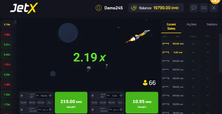 JetX es sorprendentemente sencillo pero increíblemente adictivo, lo que lo hace accesible a la mayoría de los jugadores. La esencia del juego es realizar apuestas y decidir cuándo retirarlas mientras el avión está en vuelo. Cuanto más tiempo el jet se mantenga en el aire, mayor será el multiplicador y, por ende, las ganancias potenciales. Sin embargo, el riesgo de perderlo todo al estrellarse el avión es inminente, lo que exige decisiones rápidas y calculadas por parte del jugador.