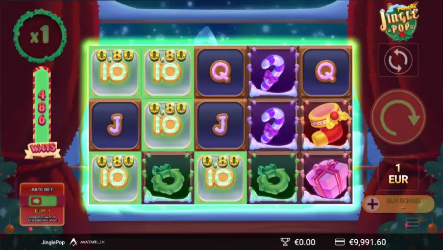 Los gráficos de JinglePop son impresionantes y detallados. Cada símbolo y elemento del juego está diseñado con una alta calidad visual que destaca la temática navideña. Los símbolos, que incluyen adornos navideños y figuras festivas, están llenos de colores vibrantes y detalles precisos que añaden profundidad al juego. Esta atención al detalle en el diseño gráfico asegura que cada giro del carrete sea una experiencia visualmente placentera para los jugadores.