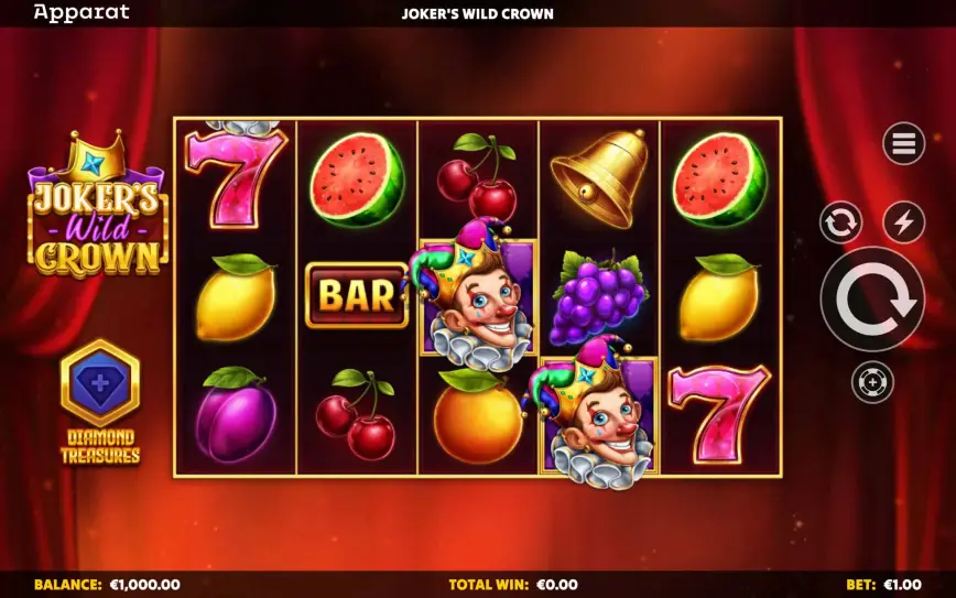 Joker’s Wild Crown es una tragamonedas que combina lo mejor del estilo clásico con un diseño moderno y pulido, ofreciendo una experiencia de juego accesible, emocionante y visualmente atractiva. Con una estructura 5×3 y 10 líneas de pago, un RTP competitivo del 96.11% y una volatilidad baja a media, este título de Apparat Gaming destaca por su equilibrio entre jugabilidad sencilla y funciones especiales efectivas, como los comodines del Joker y la función “Joker’s Crown” que añade Wilds aleatorios en pleno giro. Compatible con todos los dispositivos, con apuestas desde solo 0.10 hasta 200 unidades y un símbolo “7” que paga hasta 500.000 créditos, Joker’s Wild Crown es perfecto como jugadores que buscan sesiones relajadas pero con buen potencial de ganancia.