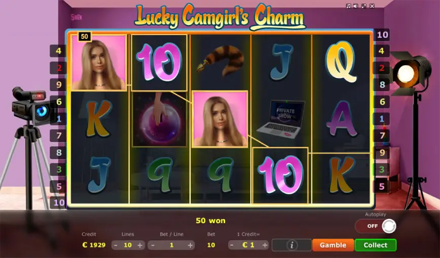 Lucky Camgirl’s Charm presenta un sistema de juego estándar pero efectivo, con múltiples líneas de pago que ofrecen diversas oportunidades de ganar. Los jugadores pueden ajustar su apuesta y el número de líneas de pago para personalizar su experiencia de juego según su presupuesto. Este nivel de personalización es especialmente importante para los jugadores chilenos, quienes pueden apostar en pesos chilenos (CLP), asegurando una experiencia accesible y adecuada para todos los presupuestos.