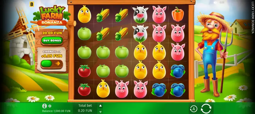 Lucky Farm Bonanza ofrece un rango de apuestas que va desde 0.2 hasta 12, lo que brinda flexibilidad para jugadores con distintos presupuestos. Esta amplitud permite tanto a los jugadores casuales como a los de alta apuesta disfrutar del juego a su propio ritmo y conforme a sus preferencias financieras.