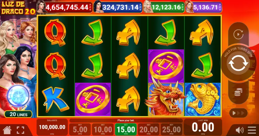 Luz de Draco 20 presenta 20 líneas de pago, lo que ofrece múltiples oportunidades para combinaciones ganadoras en cada giro. Esta estructura de líneas de pago permite a los jugadores experimentar con diferentes estrategias de apuesta, lo que puede ser especialmente atractivo para aquellos que disfrutan probando nuevas tácticas para maximizar sus ganancias. Además, las líneas de pago están claramente indicadas, facilitando a los jugadores el seguimiento de sus apuestas y ganancias potenciales.