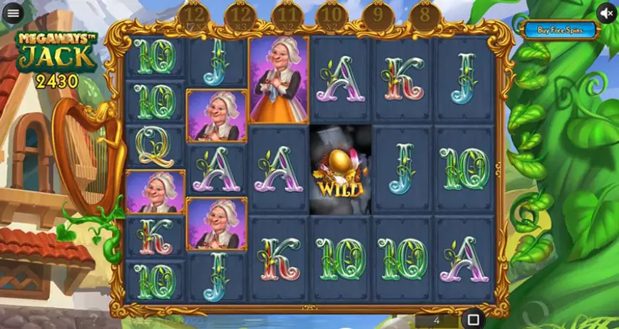 Los personajes emblemáticos del cuento, como la vaca, la oca, la abuela, el gigante y, por supuesto, Jack, están representados como símbolos en el juego. Estos personajes no solo añaden profundidad a la temática, sino que también son clave para las mecánicas del juego. Por ejemplo, Jack actúa como el símbolo premium, ofreciendo las recompensas más altas, mientras que otros personajes, como el gigante y la abuela, contribuyen a las diferentes líneas de pago y bonificaciones. Además, el juego cuenta con símbolos especiales como el huevo dorado, que actúa como comodín, y los frijoles mágicos, que pueden desencadenar giros gratis y otras bonificaciones.