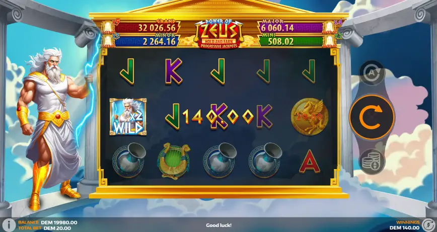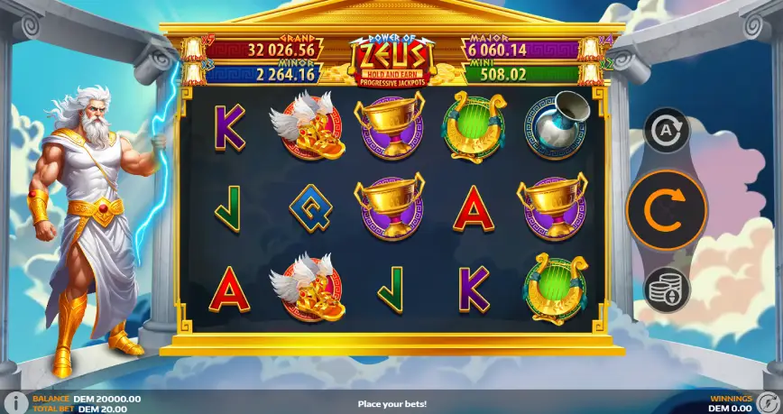 Power of Zeus opera en una configuración de 5×3 carretes y 20 líneas de pago, lo que proporciona múltiples oportunidades para formar combinaciones ganadoras. Esta disposición clásica es una de las favoritas tanto para los principiantes que buscan algo fácil de entender, como para los jugadores experimentados que disfrutan de un juego rápido y dinámico.