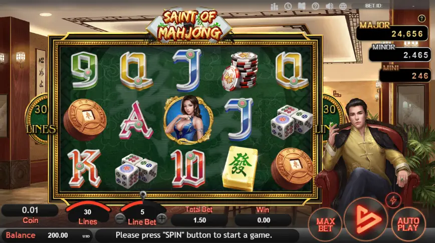 Gráficos, sonido y animaciones de tragamonedas Saint of Mahjong