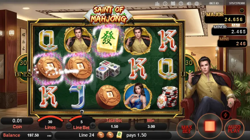 Monto de apuesta, RTP y varianza de Saint of Mahjong slot