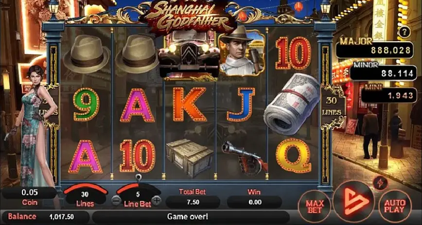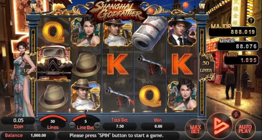 El juego Shanghai Godfather nos transporta al fascinante y peligroso mundo del crimen organizado en el Shanghai de los años 1930. Esta tragamonedas, desarrollada por SimplePlay, captura la esencia de esa era con una narrativa que mezcla elementos de misterio y aventura, sumergiéndote en una atmósfera cargada de intriga y emoción. Desde el primer giro, te sientes como parte de una película de gánsteres, donde cada símbolo en los carretes cuenta una parte de la historia. Es un viaje que no solo promete entretenimiento, sino también la posibilidad de ganar en grande.