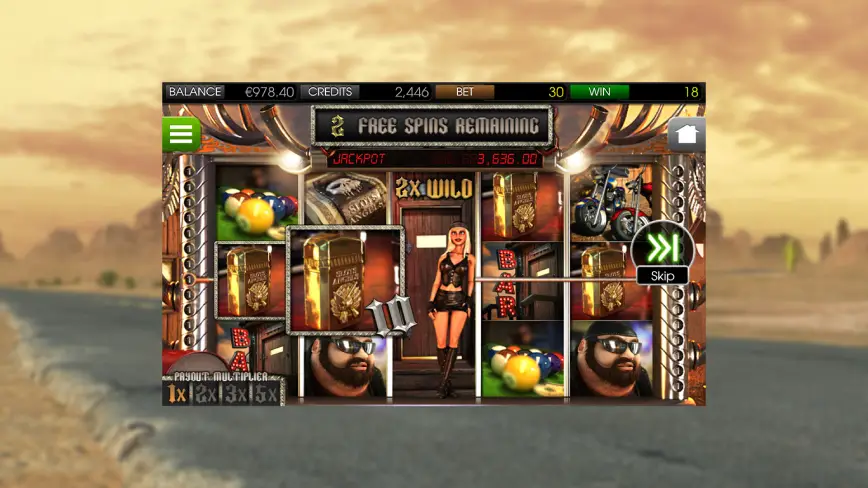 La banda sonora es igual de impresionante, con una música de rock potente que acompaña cada giro de los carretes, reforzando así el ambiente de adrenalina y velocidad. Los efectos sonoros, como el rugido de las motocicletas y el bullicio de un bar lleno de moteros, contribuyen significativamente a la inmersión del jugador. Es evidente que Betsoft ha invertido esfuerzo en crear un entorno sonoro que complemente perfectamente la experiencia visual.
