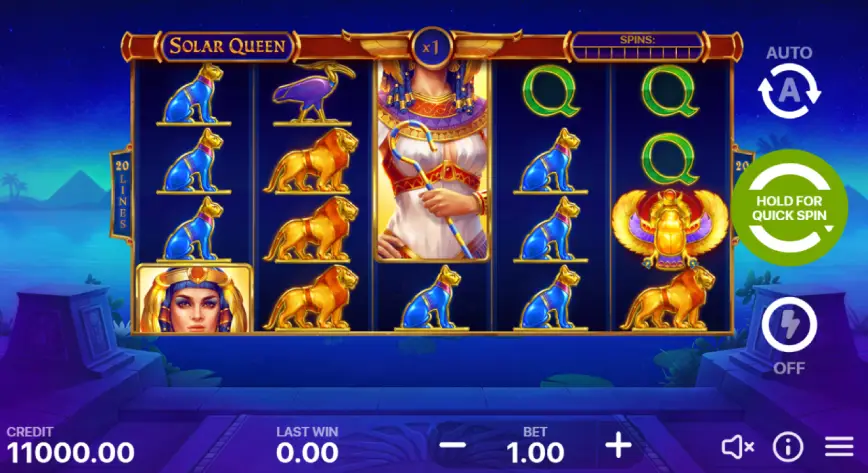 Solar Queen no es solo una tragamonedas más con un tema egipcio, sino una obra cuidadosamente elaborada que utiliza la rica mitología del Antiguo Egipto para sumergir a los jugadores en un entorno místico y fascinante. Desde los colores dorados que evocan el brillo del sol sobre las arenas del desierto hasta los símbolos de los dioses y faraones, cada elemento del juego está diseñado para transportarte a una era de poder y misterio. Este enfoque no sólo atrae a los jugadores, sino que también mantiene el interés de aquellos jugadores que buscan algo más que simplemente girar los carretes.