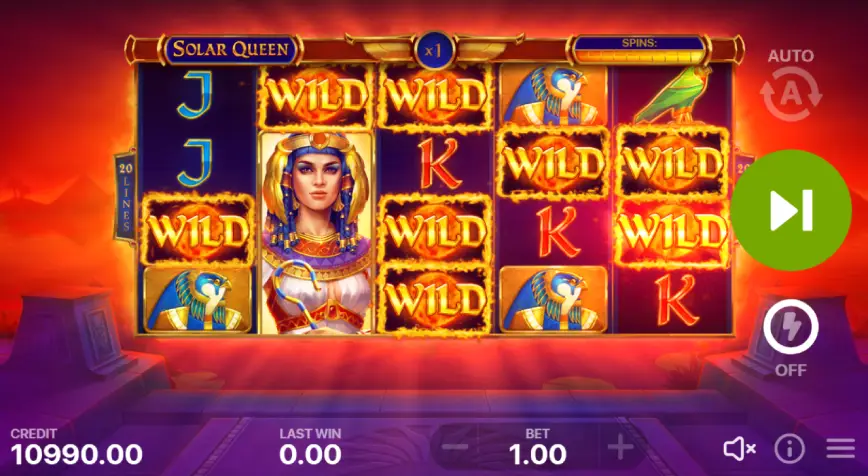 Pero no solo los gráficos hacen que Solar Queen destaque. La calidad sonora es igualmente impresionante. La música de fondo es cuidadosamente seleccionada para mantener una atmósfera de misterio y aventura, sin volverse repetitiva o molesta. Los efectos de sonido, que cambian en intensidad dependiendo de las acciones en el juego, están perfectamente alineados con la temática egipcia, creando una experiencia sonora que complementa y mejora la jugabilidad, haciendo que cada giro sea emocionante.