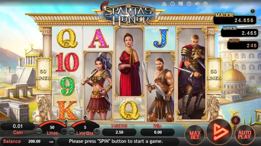 En Sparta’s Honor, los jugadores tienen la flexibilidad de ajustar sus apuestas dentro de un rango que va desde 0.20 hasta 250.00 por giro. Esto se logra configurando el número de líneas en las que deseas apostar, el número de monedas por línea y la denominación de las monedas. Esta amplia gama de apuestas hace que el juego sea accesible tanto para jugadores casuales como para aquellos que prefieren apuestas más altas.