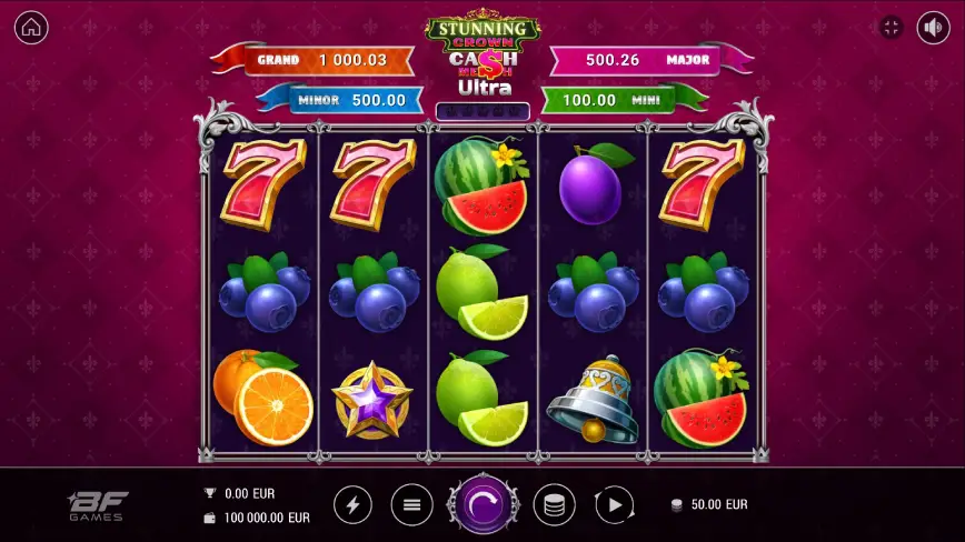 Desde el primer giro, Stunning Crown Cash Mesh Ultra me atrapó con su atmósfera que combina lo vintage y lo innovador. Este slot de BF Games rinde homenaje a las clásicas “tragamonedas de frutas”, pero no se conforma con la nostalgia: introduce mecánicas modernas que añaden profundidad, dinamismo y, sobre todo, emoción.
