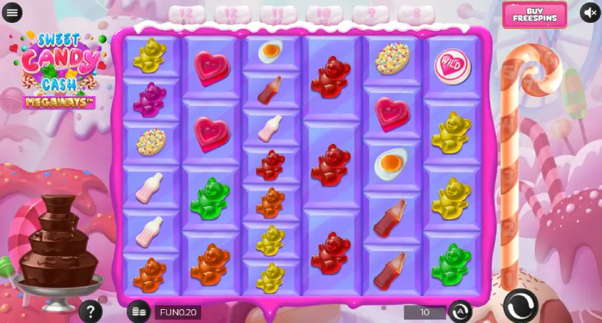 Sweet Candy Cash utiliza el popular formato Megaways, que introduce una estructura de carretes variable de 6 rodillos y hasta 7 símbolos por carrete. Esto permite hasta 117,649 formas de ganar, proporcionando una emocionante incertidumbre en cada giro. Las combinaciones ganadoras se forman mediante un sistema de cascadas, donde los símbolos ganadores desaparecen para dejar espacio a nuevos símbolos que caen desde arriba, potencialmente creando nuevas combinaciones ganadoras en una sola jugada.