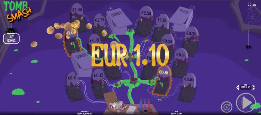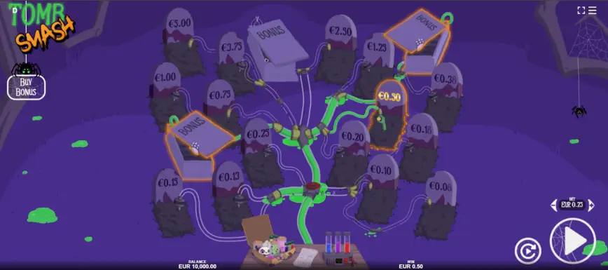 Aprecio cuando el tema de un juego se refleja directamente en su mecánica. Tomb Smash no es solo fachada: tiene un minijuego llamado Lab Bonus, donde el jugador intenta “revivir zombis” para obtener recompensas. Este toque añade coherencia temática, y también un respiro divertido entre tiradas.
