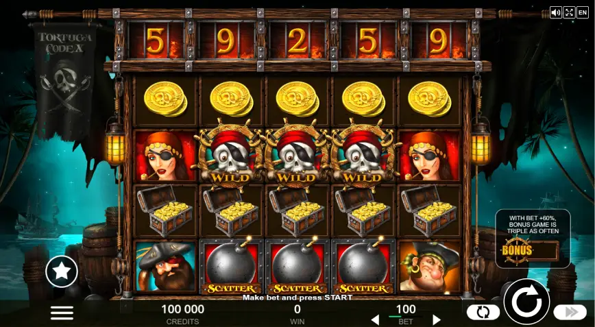 Tortuga Codex ofrece opciones de apuesta adicionales que permiten a los jugadores personalizar su experiencia de juego. La función “Buy Bonus” es una característica destacada que permite a los jugadores acceder directamente a la ronda de bonificación sin tener que esperar a que aparezcan los símbolos scatter. Además, la opción de apuesta Bet+60% incrementa la apuesta en un 60% y triplica las posibilidades de activar el juego de bonificación, lo que resulta en una multiplicación de las ganancias por la apuesta base. Estas opciones son perfectas para aquellos que desean aumentar su riesgo y, potencialmente, sus recompensas.
