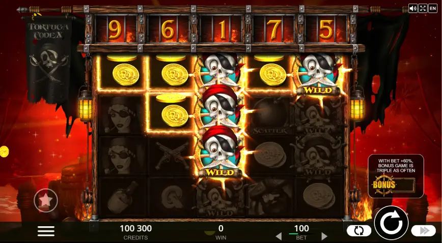 Uno de los aspectos más destacados de Tortuga Codex es la calidad visual y sonora que ofrece. Belatra Games ha puesto especial atención en los detalles, creando una atmósfera que sumerge al jugador en el mundo pirata desde el primer momento. Los gráficos están cuidadosamente diseñados, con símbolos que representan elementos icónicos del mundo pirata, como calaveras, iconos de piratas y cofres del tesoro. La animación es fluida y añade dinamismo a cada giro, mientras que los efectos de sonido complementan perfectamente la temática aventurera del juego, con el sonido de las olas y el crujir de los barcos, haciendo que cada sesión de juego sea una experiencia casi cinematográfica.