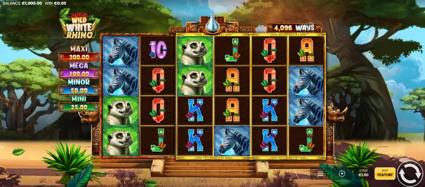 Wild White Rhino se caracteriza por su baja volatilidad, lo que significa que los jugadores pueden esperar obtener ganancias moderadas pero más frecuentes. Esta característica es ideal para aquellos que prefieren una experiencia de juego más estable y menos arriesgada.