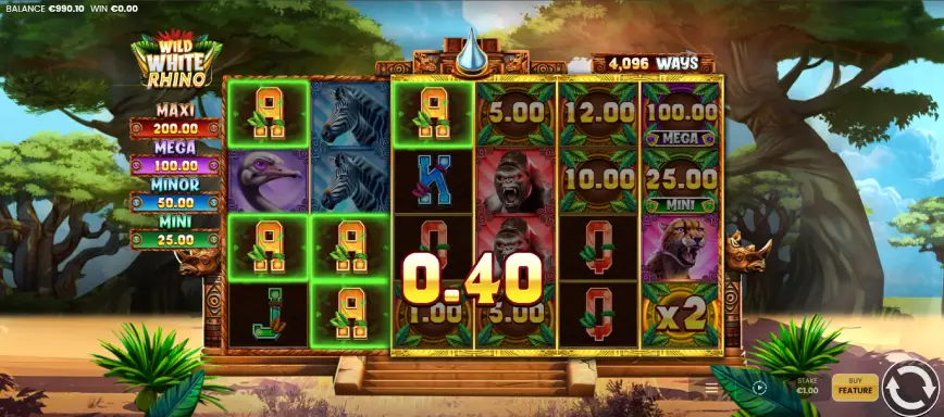 Wild White Rhino no solo destaca por su temática y gráficos, sino también por sus mecánicas de juego innovadoras y entretenidas.