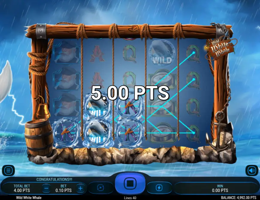 El diseño del juego en Wild White Whale es de cinco rodillos y cuatro filas, ofreciendo un total de 40 líneas de pago. Esta configuración es ideal para maximizar las oportunidades de formar combinaciones ganadoras. Como conocedor de la mecánica de las tragamonedas, puedo confirmar que esta estructura es efectiva para mantener el juego dinámico y emocionante. Los jugadores tienen múltiples oportunidades de ganar en cada giro, lo que incrementa la emoción y el potencial de recompensa.